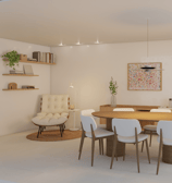 Realizamos uma harmonização completa, equilibrando cores, texturas e materiais, sempre com soluções personalizadas para o seu espaço. Respeitamos o seu orçamento e evitamos gastos desnecessários, para que cada decisão seja eficiente e consciente.